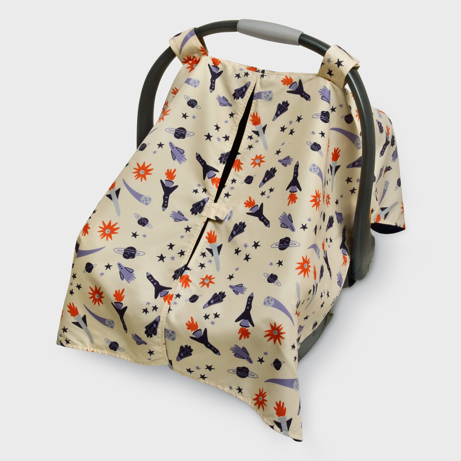 Keep the elements (and unwanted cheek pinches) at bay with a full-coverage canopy cover. This cover's breathable material creates a sun-protected, serene space for your baby while out and about, attaching to most infant car seats.